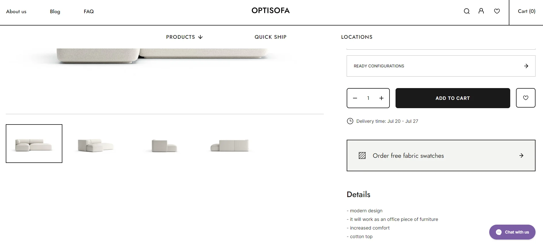 This option should be prominently displayed in the navigation or even on the product page itself. For example, Optisofa highlights this service, enhancing their customer’s confidence in making a decision, especially in a competitive online furniture marketplace.