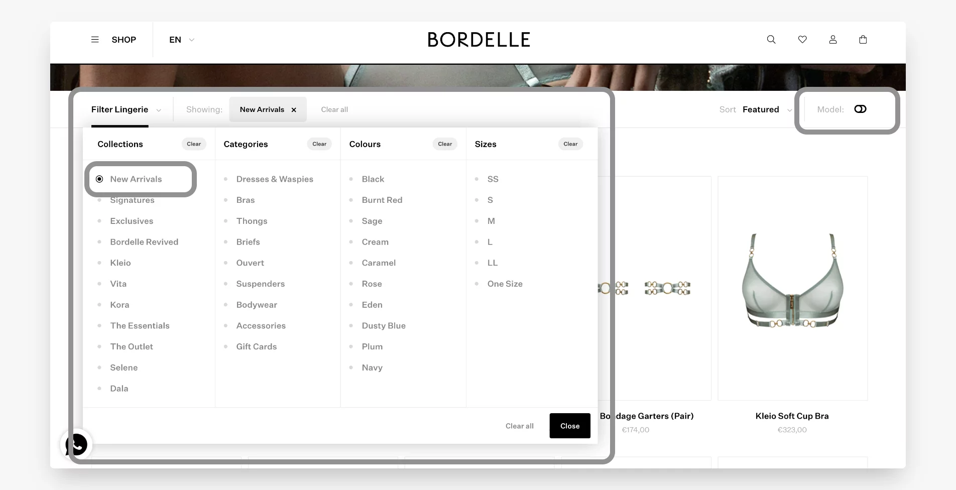 #1 Bordelle: luxury lingerie and bodywear Shopify store with top filtering possibilities