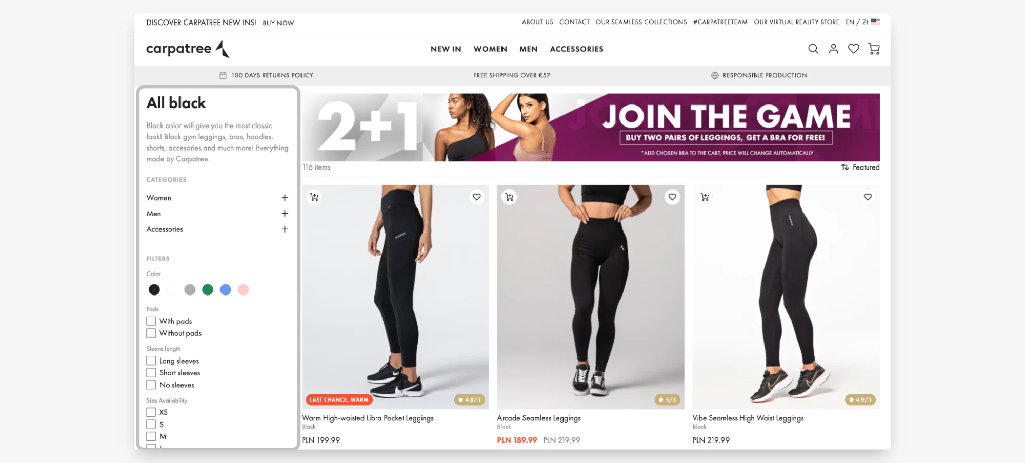 A buyer who is unable to find a product in online clothing stores will probably abandon them and look elsewhere. As much as possible, try to simplify the process. Create a search box in the header, and use relevant filter and sorting capabilities for easier navigation. And why not add AI-based product recommendations to inspire explorer users with ideas?