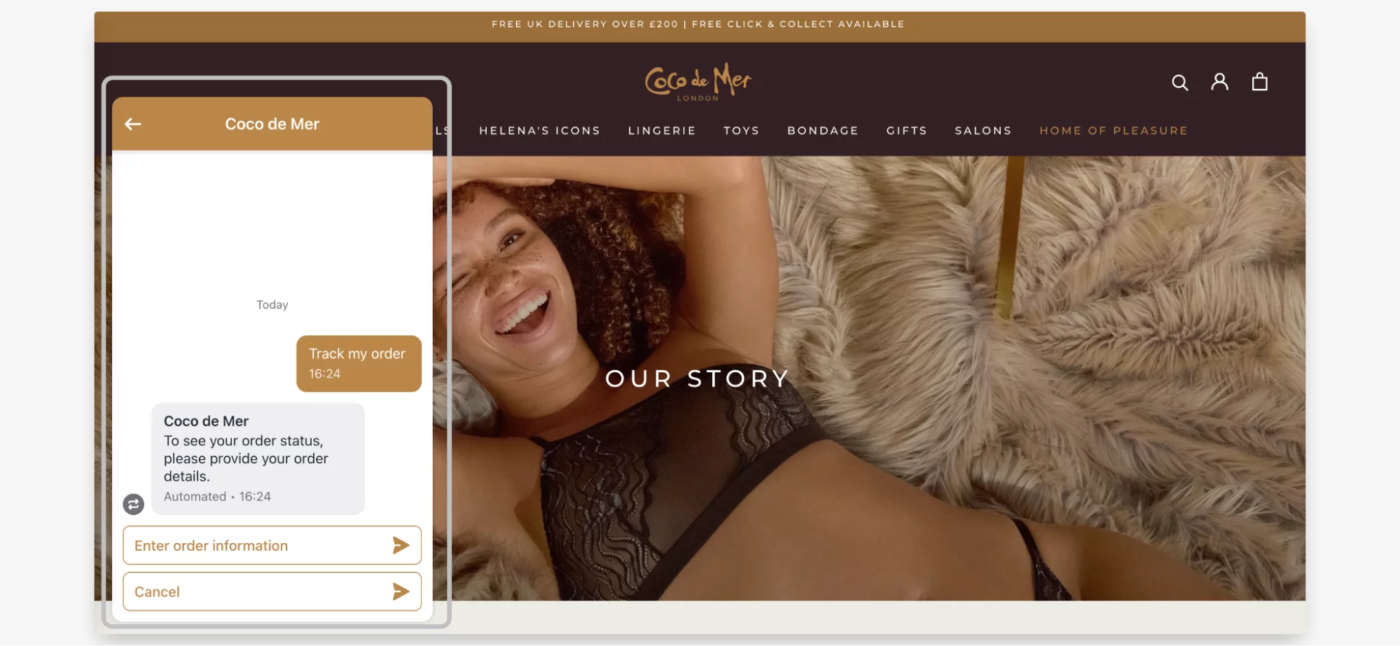 - Seamlessly working 24/7 chat lets you do quick actions, such as checking delivery status.