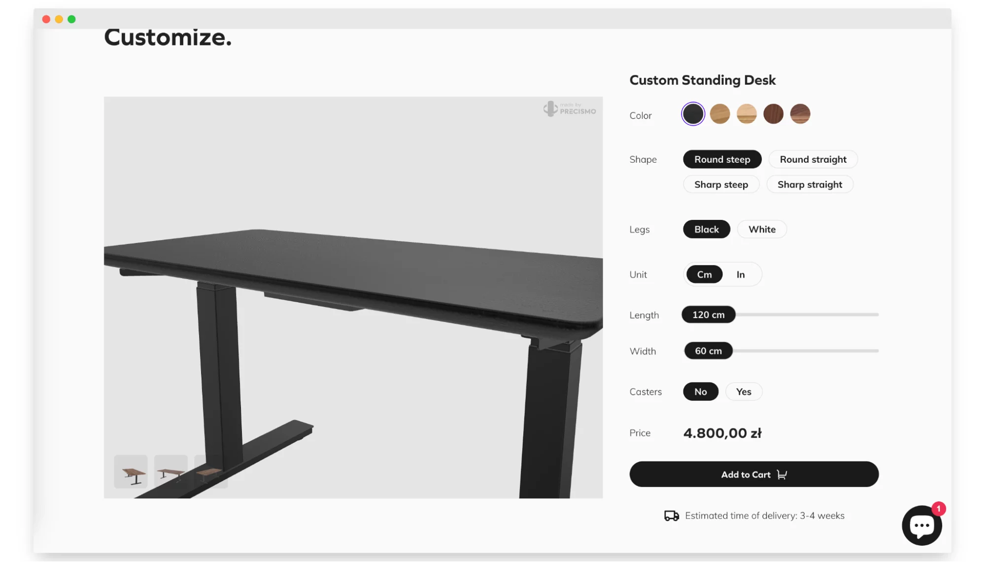 In collaboration with Precismo, we brought to life a 3D furniture configurator. This solution gives users the ability to view the product from all angles so that they do not miss any detail.