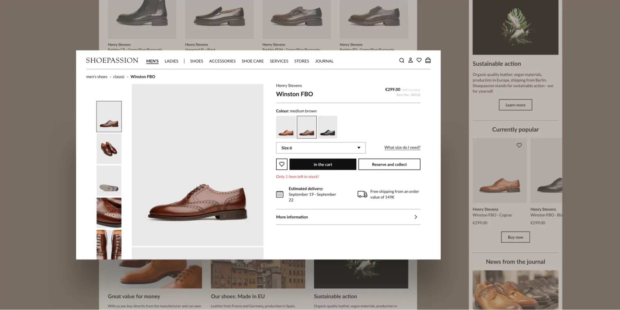 Shoepassion is not an ordinary store with comfortable shoes. It’s the store that goes with an outstanding experience (not only the one from the UX design side). Along with shoe buying, it offers customers a premium shoe restoration and repair service. Because of this, we faced the challenge of integrating both these functions into one app.