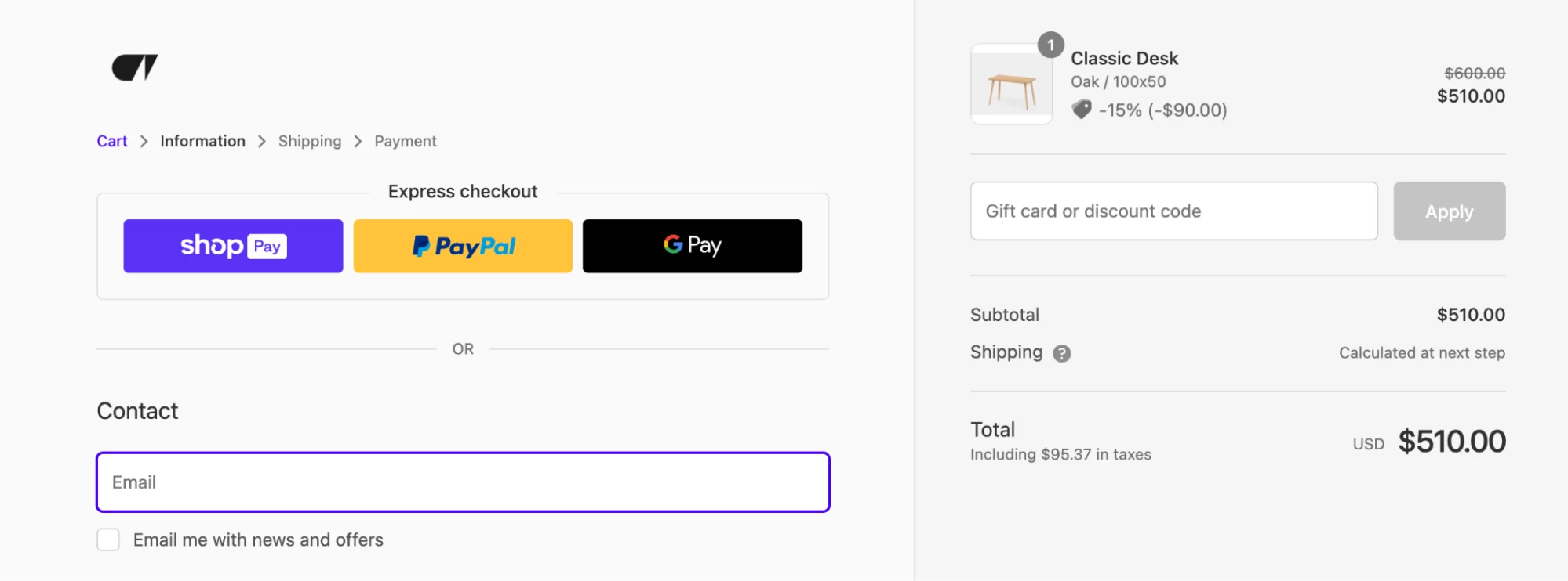 Online shopping is all about trust. You can deliver a smooth and transparent checkout process with Shopify checkout. With Shopify Plus, you can customize the checkout experience even further – manage its functionality and appearance.