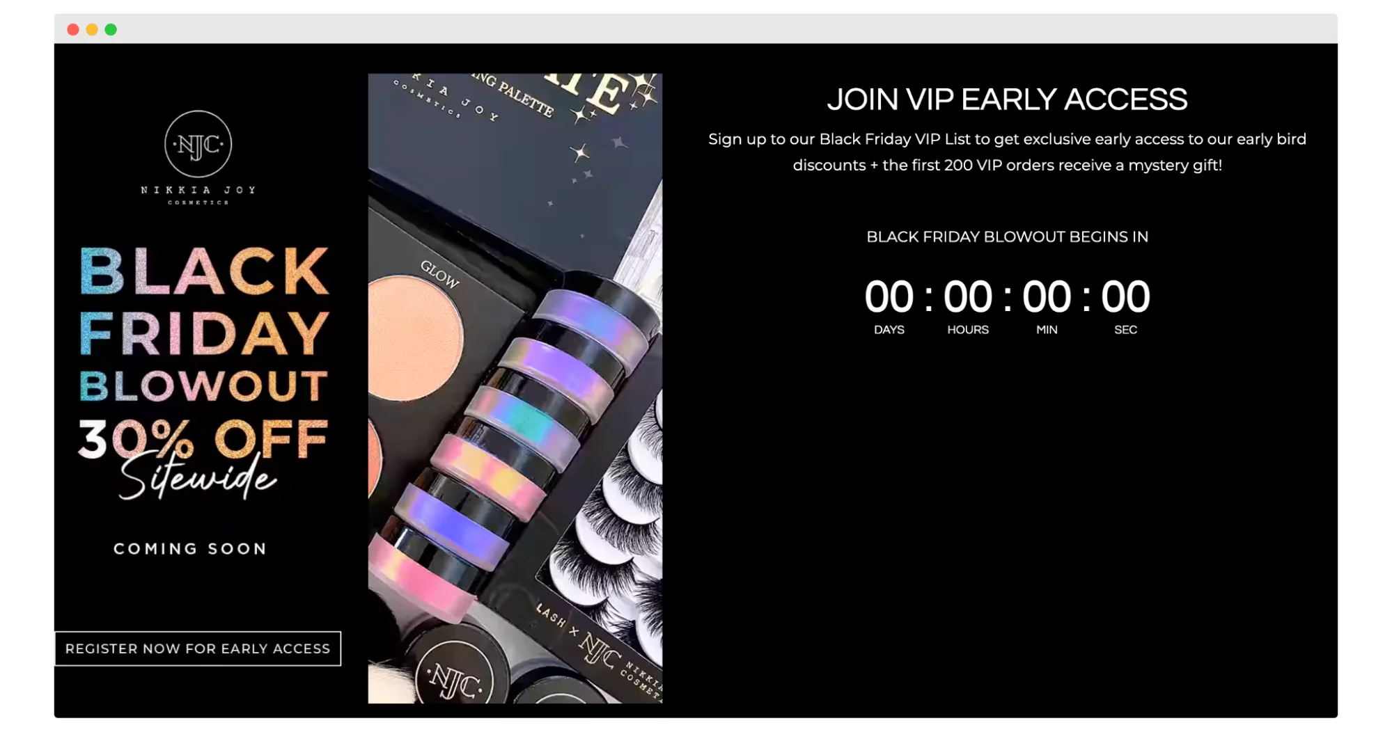 Collaborate with physical stores or other ecommerce merchants to broaden the appeal of these sales. Flash sales can be promoted on your Black Friday landing page and can be a unique way to differentiate your ecommerce business from others.