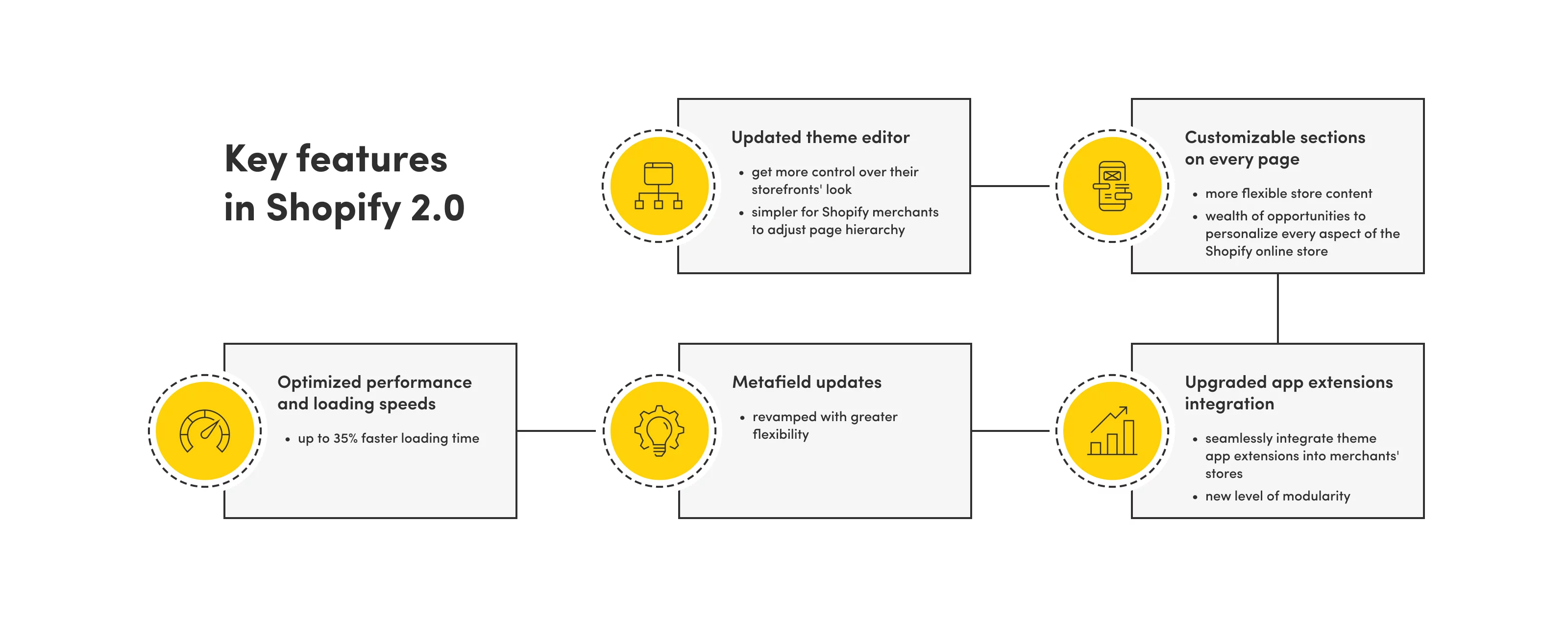 Shopify 2.0 benefits are many. Better performance, easier management, and broader customization options. Explore what migrating to Shopify 2.0 means to your online store. Here are the reasons why this migration is not a step forward but a leap toward superior e-commerce business.