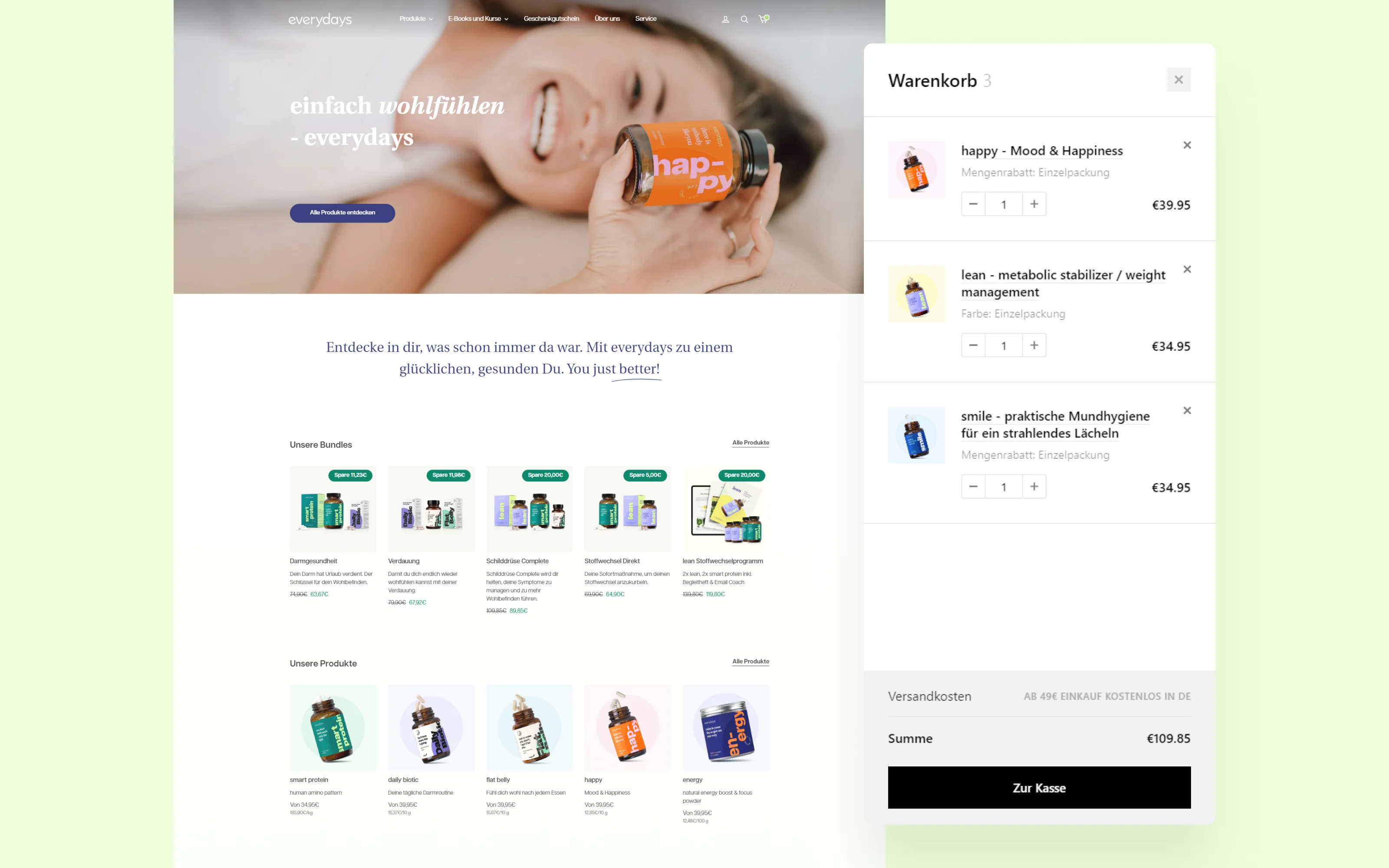 Thanks to our joint efforts, the everydays brand sells its supplements in a modern, fast Shopify store tailored to the needs of the customer and the modern realities of the industry. And the design co-created with the everydays team further focuses the attention of users.