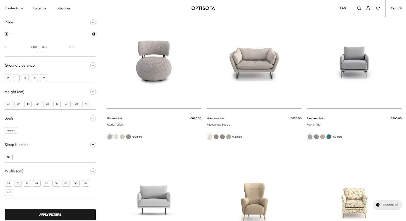 Look at Optisofa. Their collection page shows how structure can support choice. A visitor can adjust price, height, or width with sliders, tick boxes, or number fields. Filters appear on one side, clean and steady, while the products update in real time. This kind of layout helps shoppers narrow down what fits without losing sight of the bigger picture.