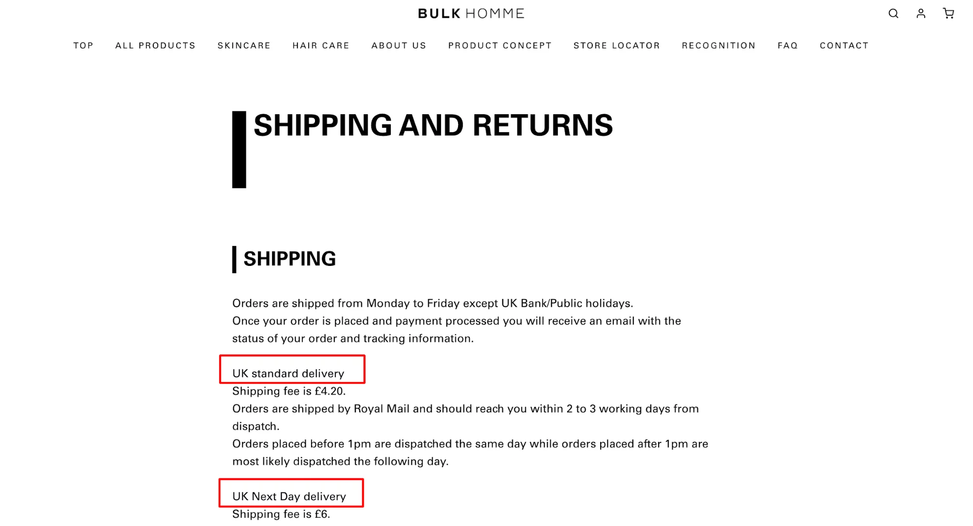 Aside from the footer, you can put delivery information on the product page. Then, shoppers see upfront how long it takes for them to receive the product.