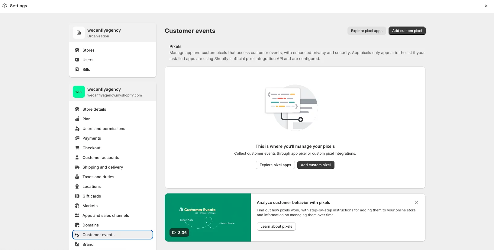 Shopify pixels manager