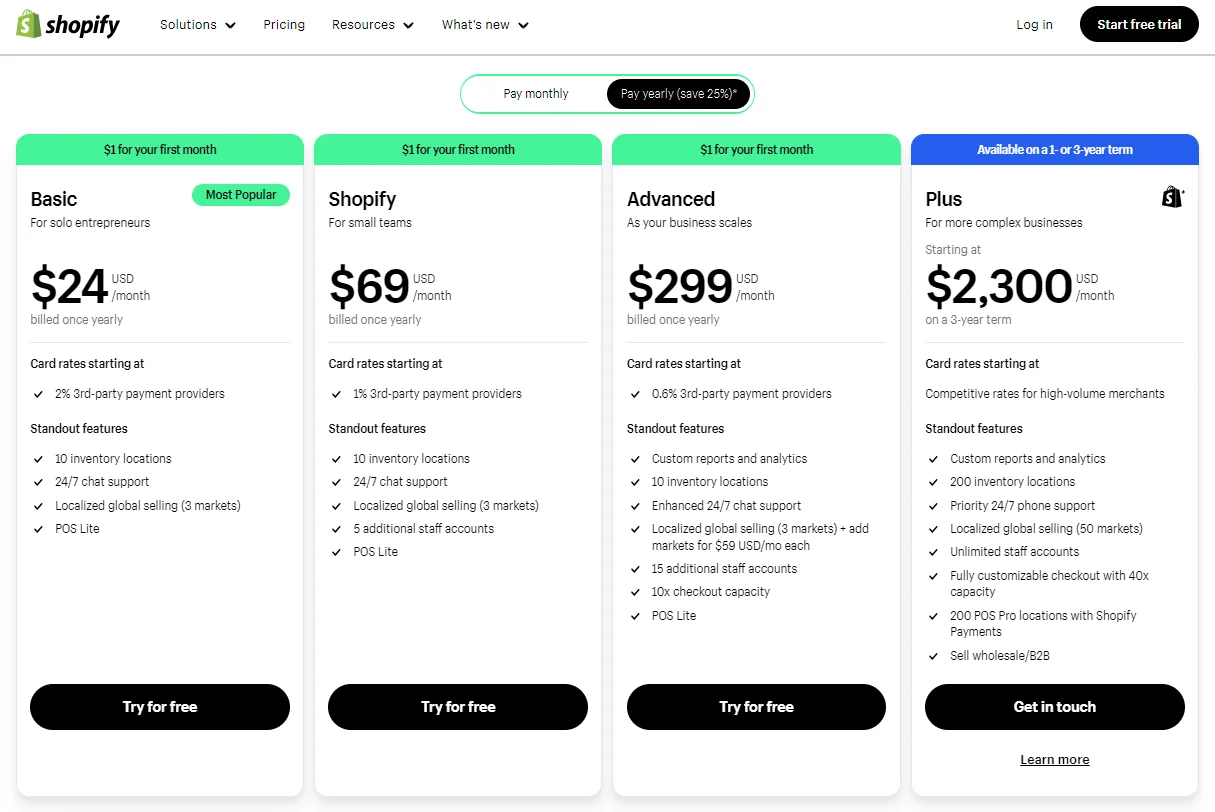 Whether you’re just starting as a solo entrepreneur or managing a small team, Shopify has plans designed to support your growth journey.