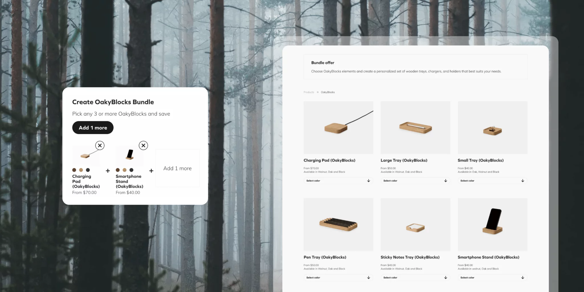 Oprócz wdrożonych rozwiązań oferowanych przez Shopify Plus, zaprojektowaliśmy i stworzyliśmy dwa innowacyjne narzędzia customowe, uszyte idealnie pod klienta. Pierwsze z nich to OakyBlocks bundler, czyli rozwiązanie, w którym klient wybiera produkty oznaczone etykietą “Oakyblocks” do paczki, a w koszyku dostaje informację o niższej cenie w zestawie.