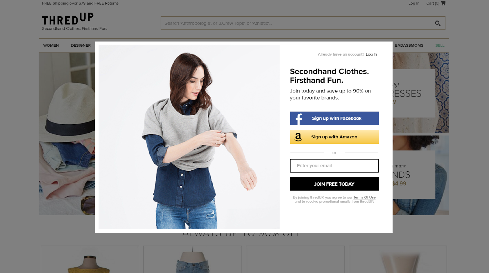 Czy twoja marka ma program recyklingowy, sprzedaje produkty z drugiej ręki lub pomaga klientom w rewitalizacji produktów? Często takie programy nie są jasno komunikowane na stronie. Jest na to sposób, np. wyskakujące okienko z powiadomieniem o usłudze. Większość właścicieli sklepów e-commerce obawia się takich rozwiązań, ale według statystyk pop-up’y działają. Oczywiście tylko i wyłącznie, jeśli nie przesadzimy z ich liczbą.