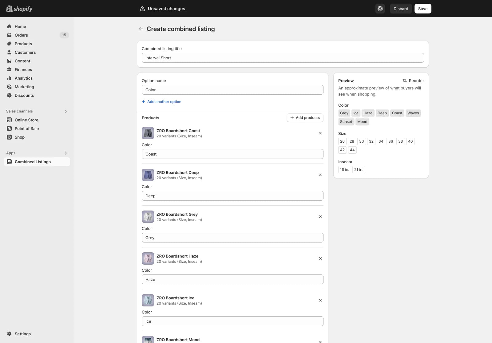 Funkcjonalność, która powinna przypaść do gustu wszystkim markom fashion, czy też sprzedającym produkty z wieloma wariantami (np. kolorystycznymi, rozmiarowymi, materiałowymi). Zapowiedziana już wcześniej, a teraz już opublikowana funkcjonalność Combined Listings pozwoli na łatwe powiązanie produktów ze sobą i umożliwienie klientowi łatwiejsze przeglądanie alternatywnych wersji produktu. Dzięki aplikacji, każda wersja (np. kolorystyczna) produktu może mieć swoją unikalną stronę (URL), galerię zdjęć (zamiast tylko jednego jak wcześniej), opis i ustawienia. Uzyskanie takiej funkcjonalności wcześniej wymagało aby każdy wariant został dodany do Shopify jako osobny produkt i następnie potrzebny był kawałek kodu, który łączył te produkty ze sobą tak aby były dostępne po zmianie koloru na stronie produktu.