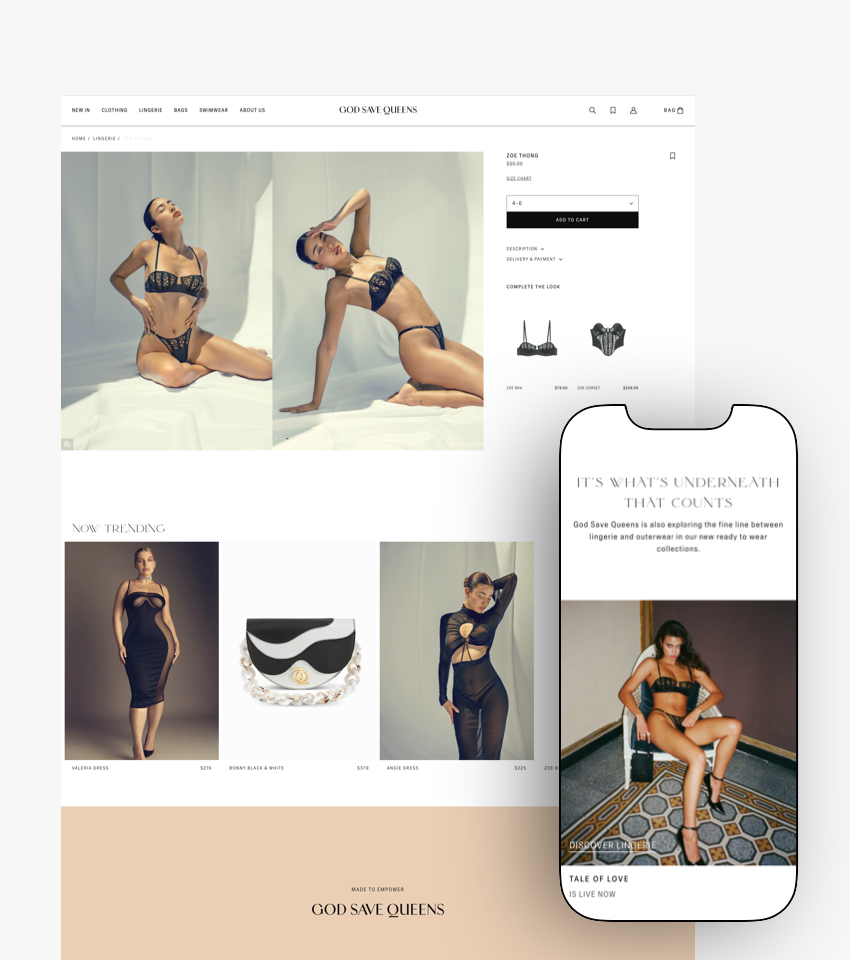 God Save Queens is a Polish brand selling unique lingerie, swimwear, dresses, and accessories. Thanks to its original designs, the brand also appealed to foreign customers – the products are sold all over the world, but are most popular in the United States, where they are worn by celebrities and influencers such as Emily Ratajkowski and Kendall Jenner.