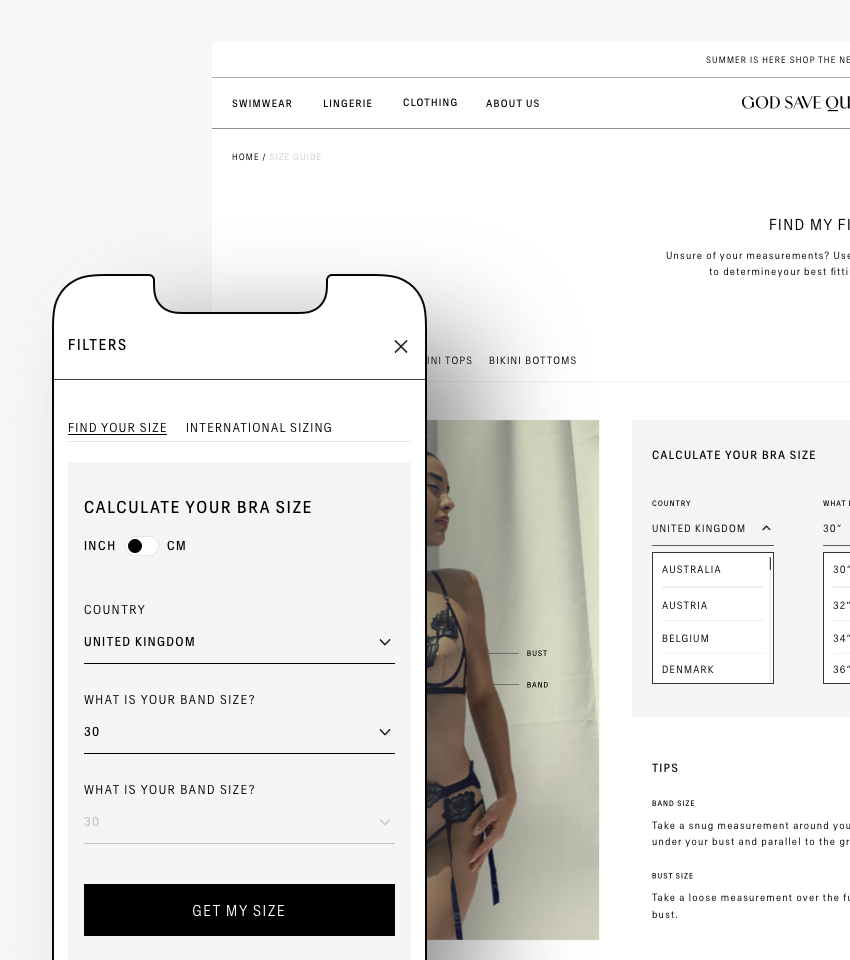 Another of the challenges that awaited our designers and developers was the creation of a custom size calculator, which will help customers from different countries to choose their bra size appropriately according to the one used by the brand. Previously, an application was used for this, which did not meet all the users’ requirements. Since the client used sizes from S to XL, they wanted to make it easier for store users to adjust their measures accordingly. The accurate calculator also aims to eliminate more returns, which were precisely due to incorrect sizing.