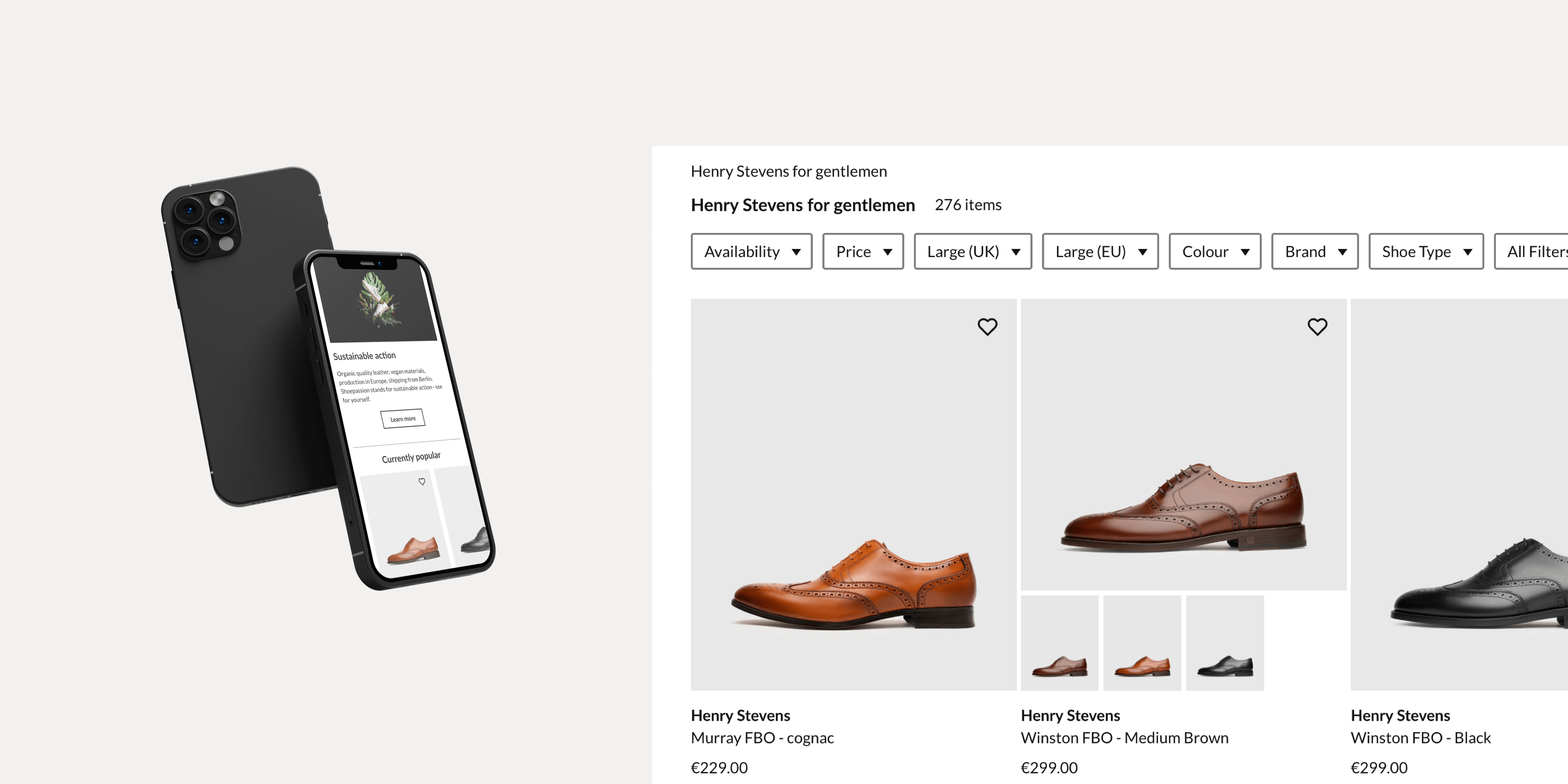 The main task of our development team was to create a new store based on the graphic designs provided by the client and the visual identity of the Shoepassion brand. The same model of cooperation was used for our first joint project, Heinrich Dinkelacker. So we knew it would work great.